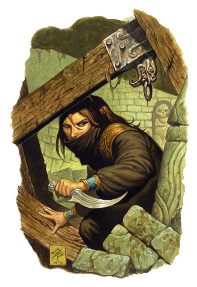 Elvisa is a Shoanti woman, the last surviving member of her clan of the Skoan-Quah tribe. She has forged her body as a living weapon, following the traditions of her warrior ancestors. Following the tragedy of her family's destruction, she left the Cinderlands to roam Varisia. During her travels she befriended several companions, including the half-orc Garrick. Eventually arriving in Magnimar, one of her friends was slain during the series of ritualistic murders haunting the city. Swearing revenge, she (and the remainder of her group, by now reduced to Garrick) was soon hired by the city council as a bounty hunter to track down the assassins who had killed the city's high judge.